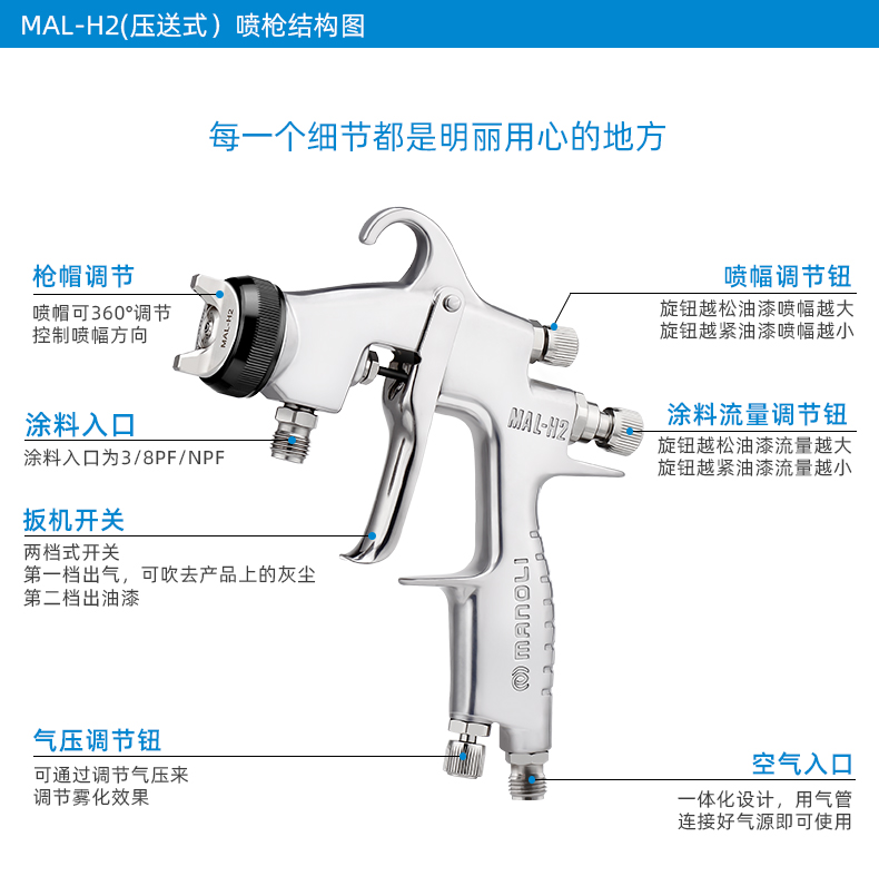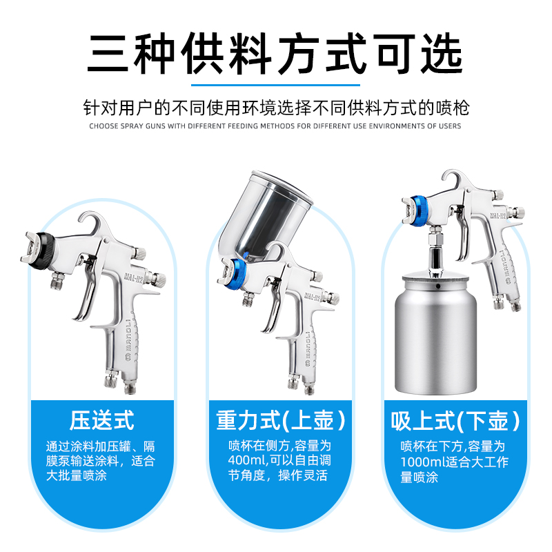 【优点】:LVMP型雾化喷枪,上漆率高,相对于传统雾化喷枪,可节省10%左右的涂料,流量大、喷幅宽,适合大面积喷涂,效率高。